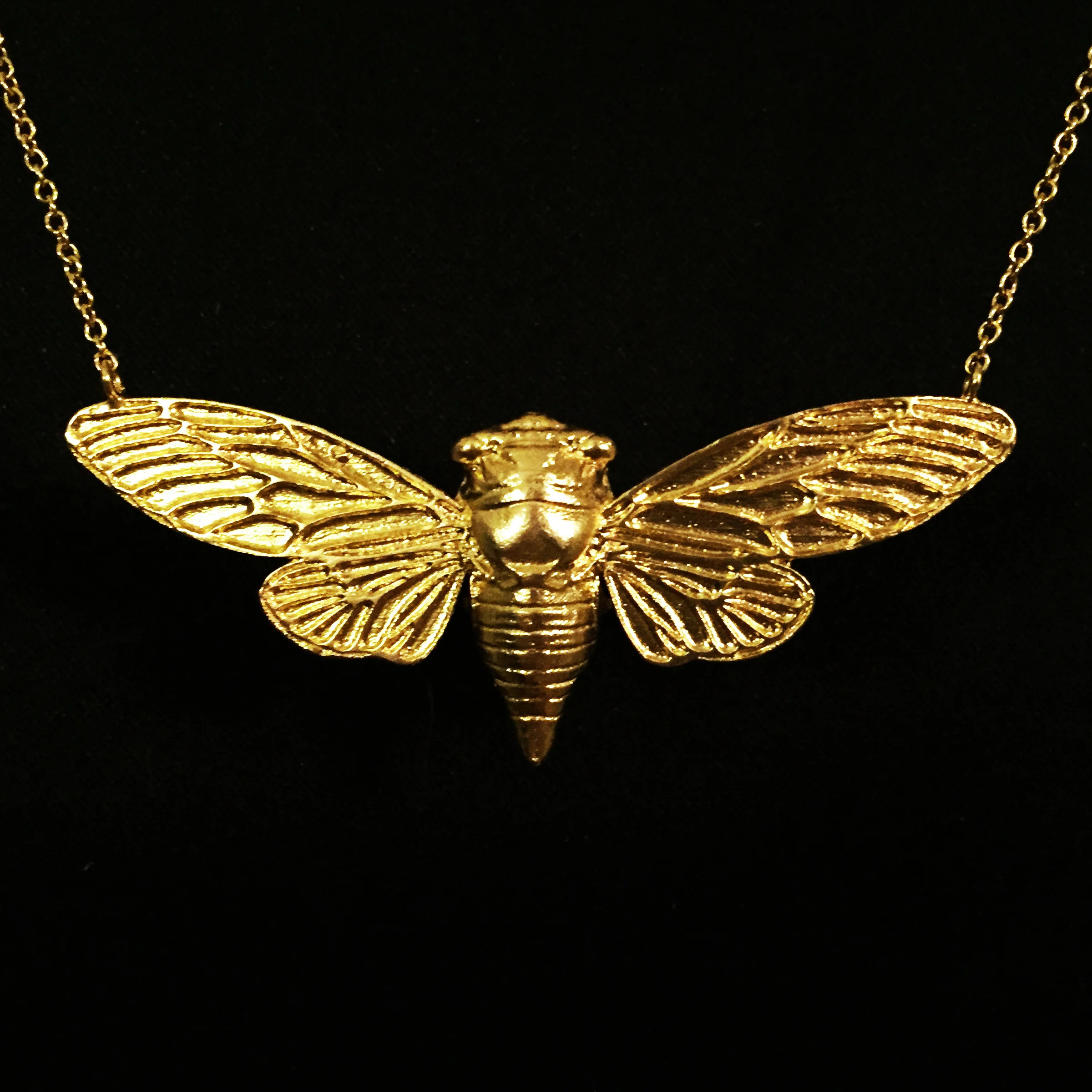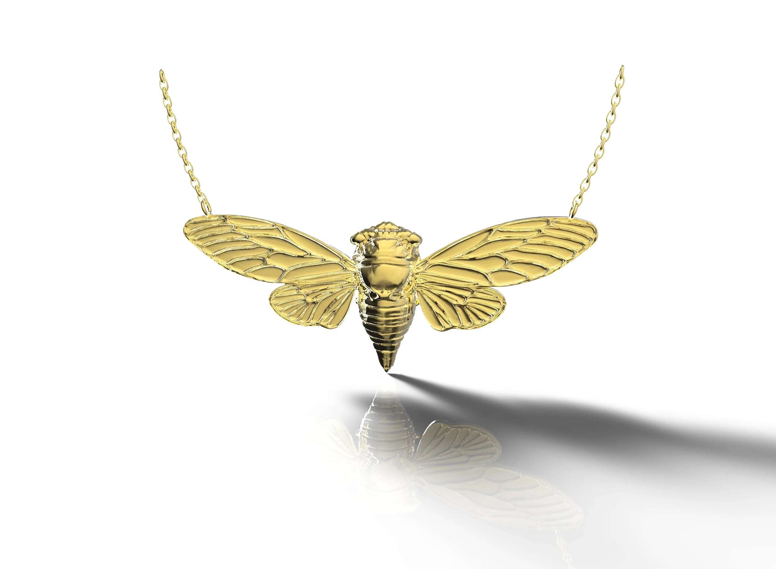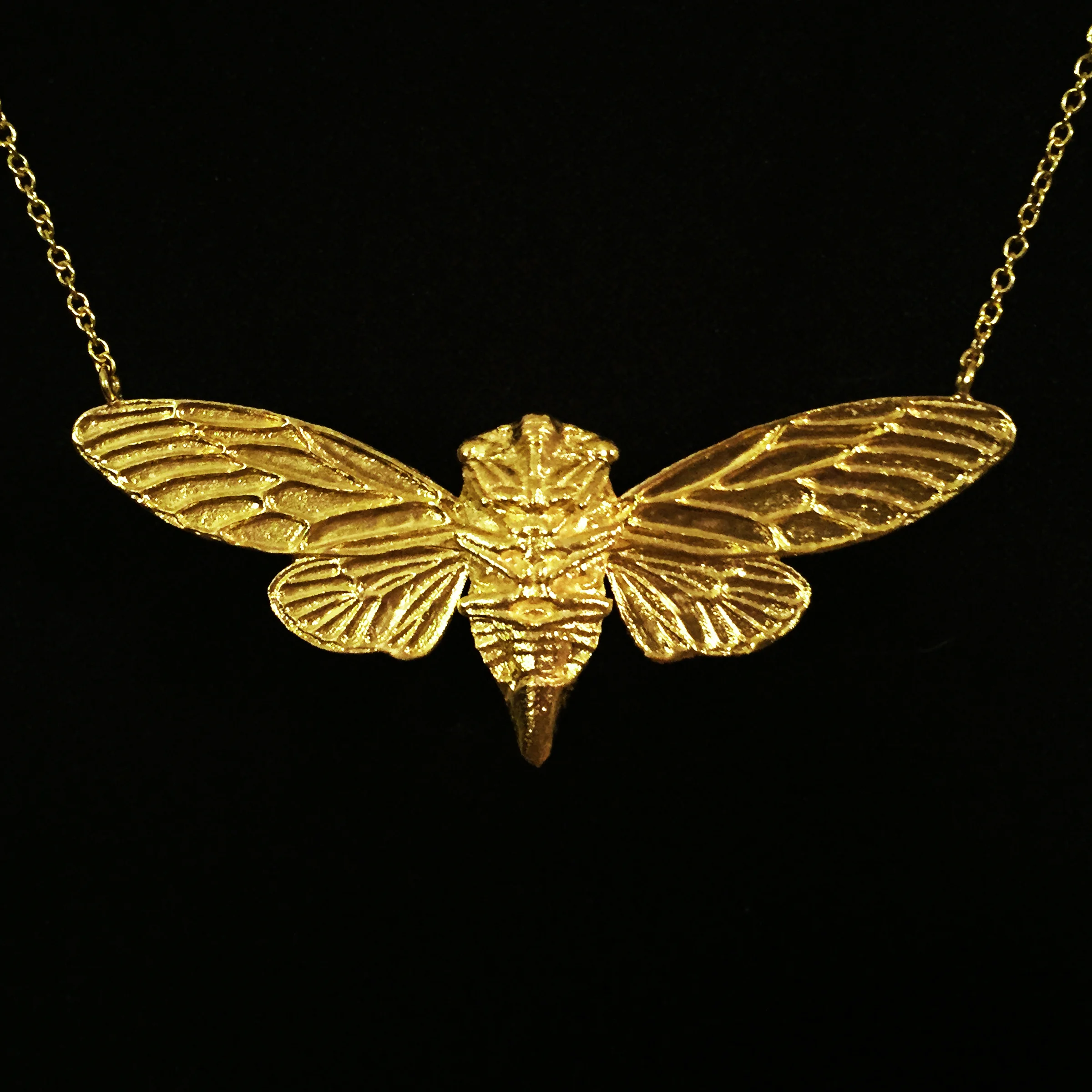 The Cicada Necklace is a one of a kind custom piece made of 18 karat gold. It was designed and modeled by me as a special gift for my girlfriend.